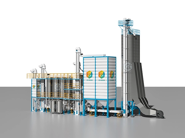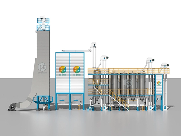 The dried paddy is sent to vertical storage for temporary storage so that it is fully slowed down and cooled before being processed. The vertical cylinder warehouse is equipped with a ventilation fan, which can take out the remaining heat. And make the rice moisture evenly.